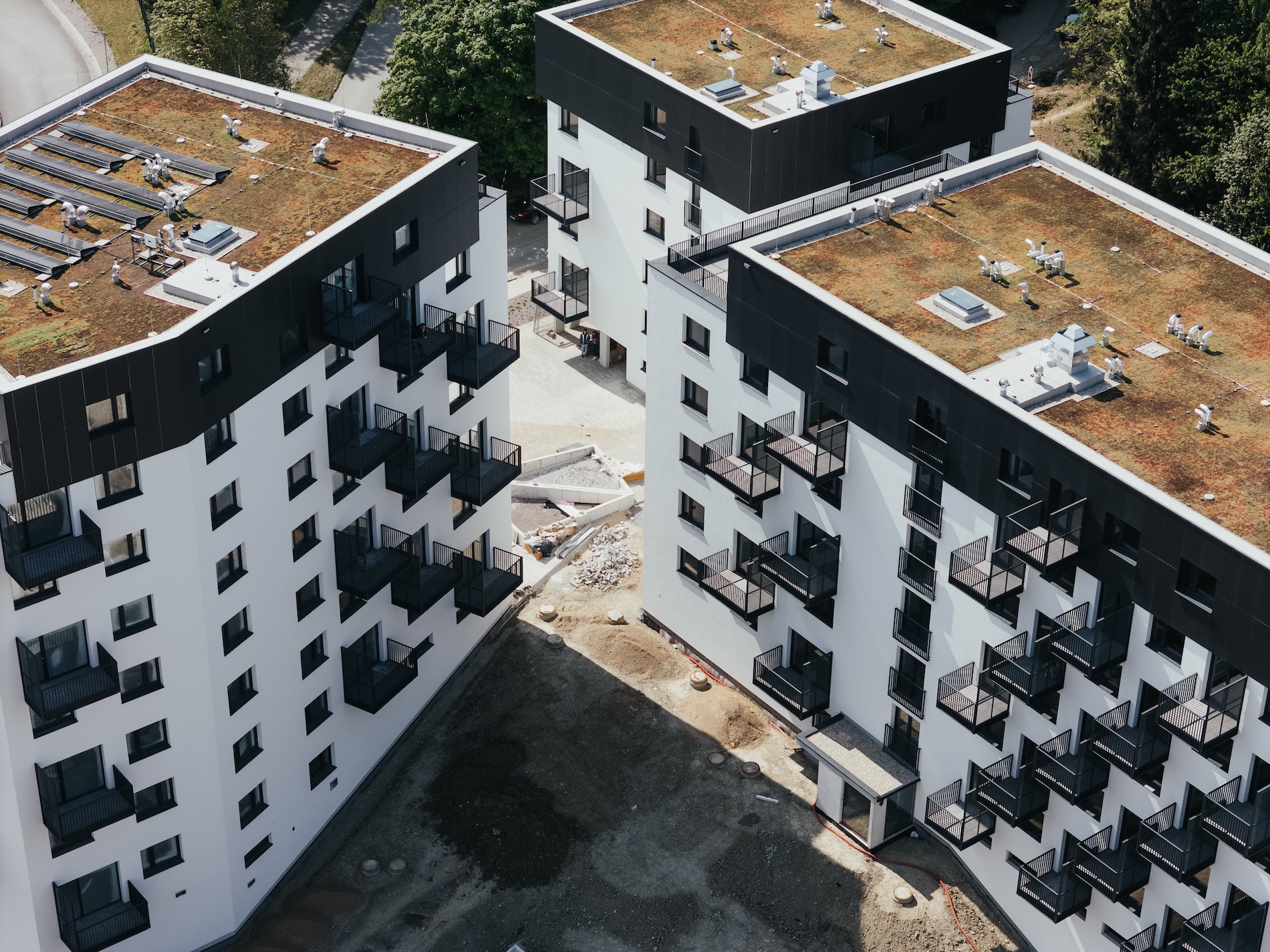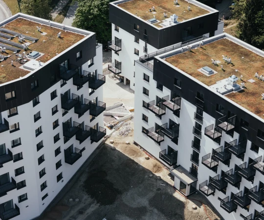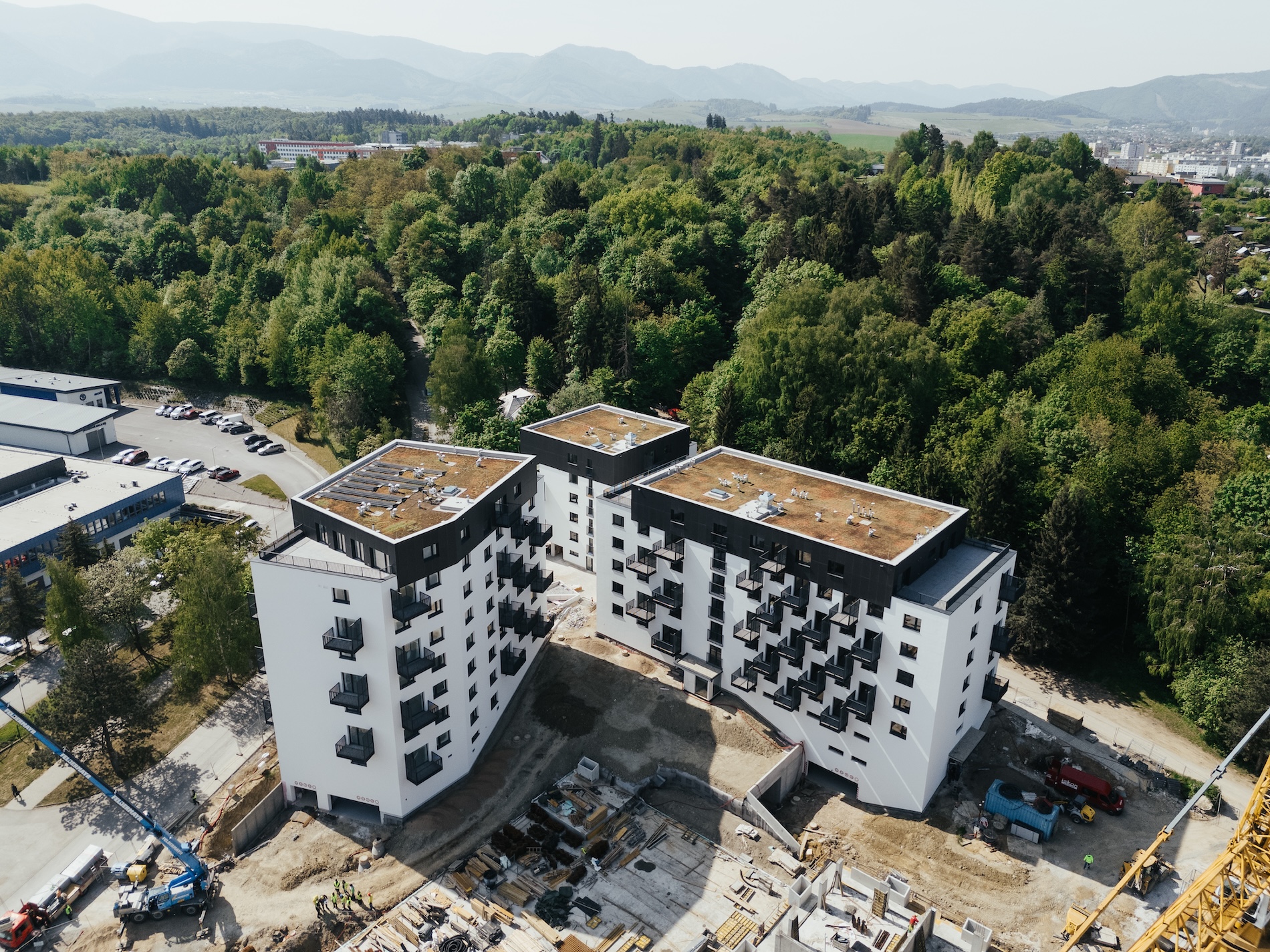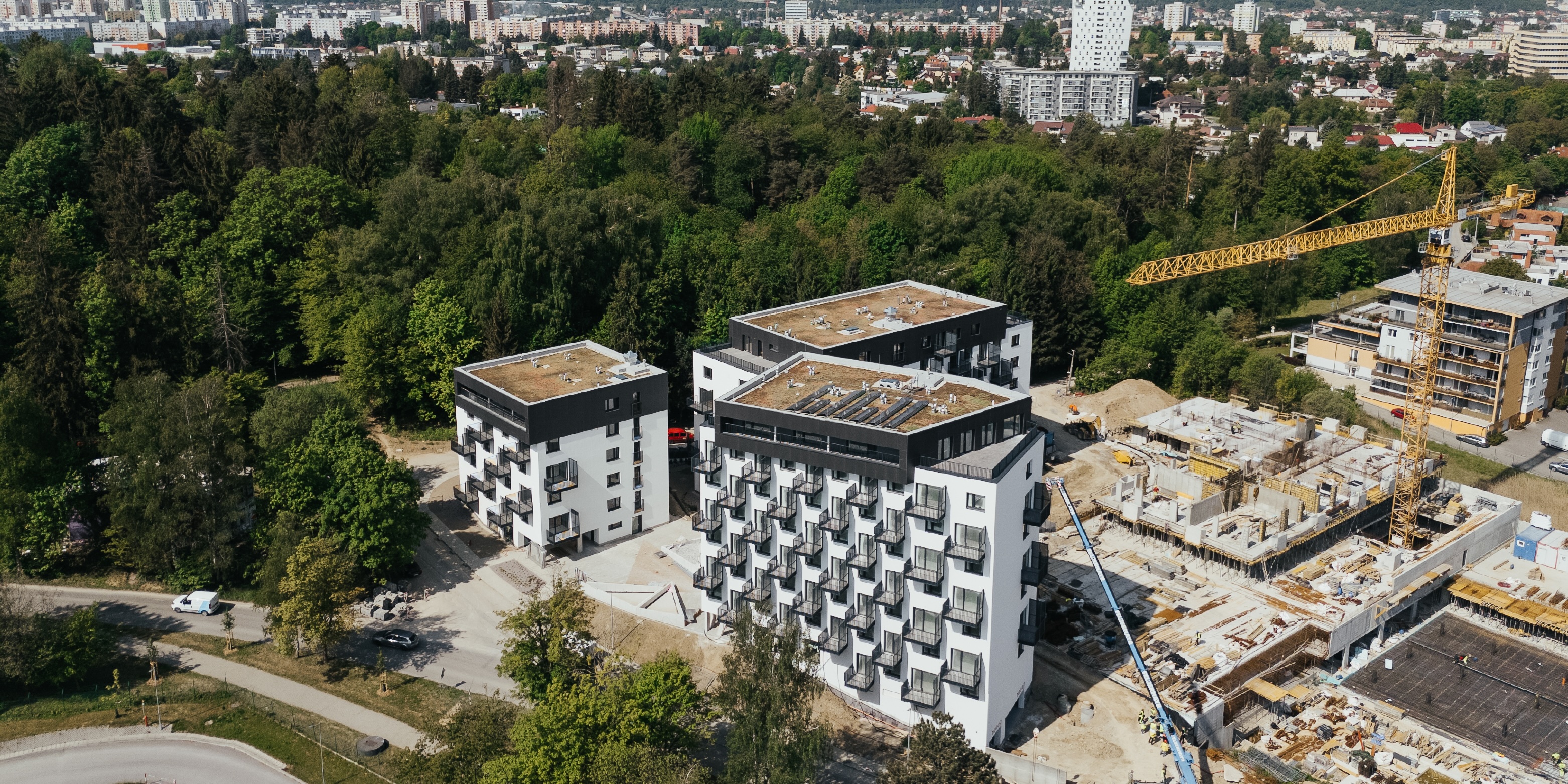 Súčasťou bytových domov budú tiež komerčné prenajímateľné priestory o výmere viac ako 150 m². S výstavbou sme začali v roku 2023 a odovzdanie oboch komplexov je naplánované na polovicu roka 2025.
