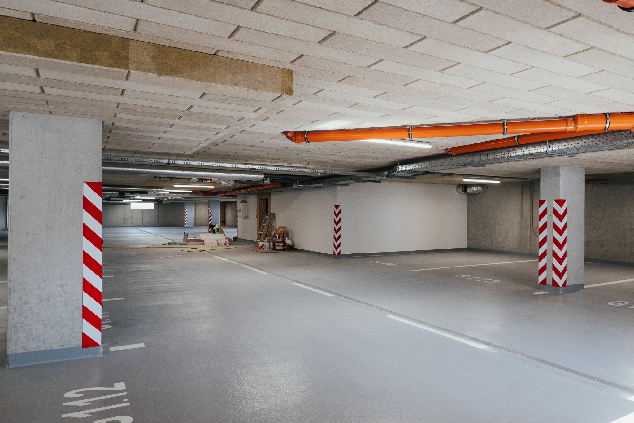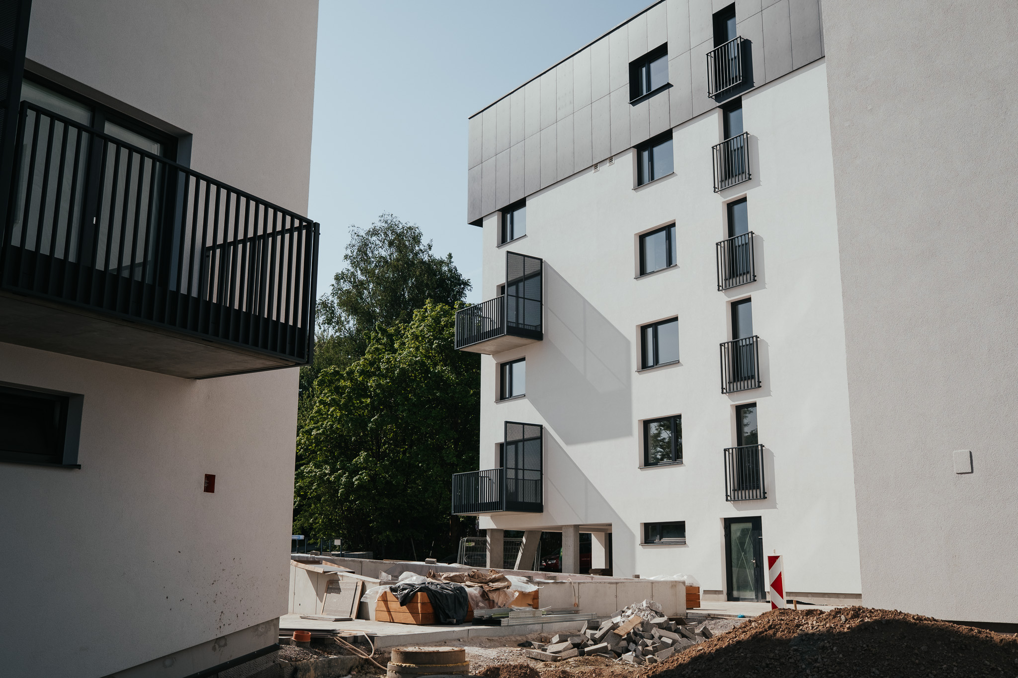 Čakajú nás už len posledné úpravy – osvetlenie areálu, spevnené plochy, výmena asfaltu či kvetináče v átriu. V interiéroch finišujeme montáže, testujeme elektroinštalácie a kamerový systém, v garážach pribúda dopravné značenie a semafory. Teší nás, že tento krásny projekt čochvíľa odovzdáme investorovi.